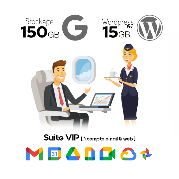 • Un compte Google Workspace incluant  un email personalisé @leblanc.fr sur la plateforme Gmail. Stockages (15Gb, 30Gb, 150Gb ou 500Gb)