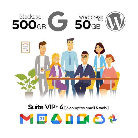 • Six comptes Google Workspace incluant  quatre emails personalisés @leblanc.fr sur la plateforme Gmail. Stockages (15Gb, 30Gb, 150Gb ou 500Gb)